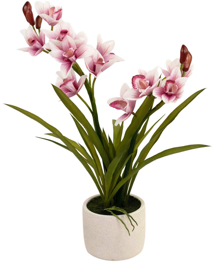 Upptäck den eleganta skönheten hos vår konstgjorda Cymbidium i en realistisk rosa nyans. Med en längd på 60 cm är denna blomma perfekt för att ge liv åt ditt hem eller kontor utan krångel med underhåll.