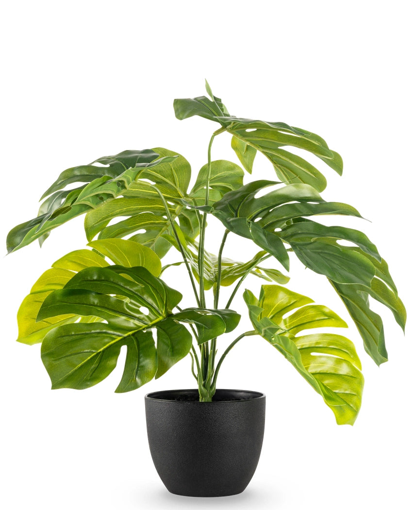 Förvandla ditt hem med vår fantastiska konstgjorda Monstera som sträcker sig 55 cm hög, elegant placerad i en stilren svart prydnadskruka. Denna växt är den perfekta lösningen för att skapa en grönskande oas utan att behöva bekymra dig om vattning eller underhåll.