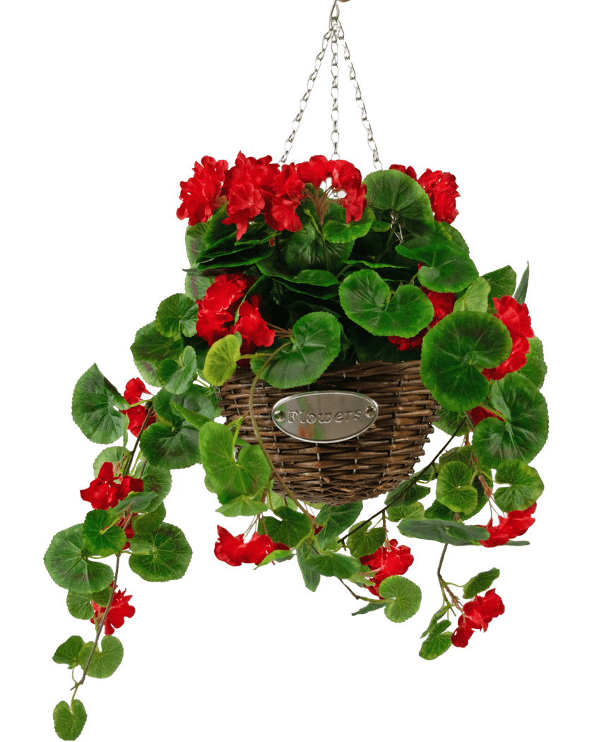 Konstgjord Begonia Röd i Korg - UV 70cm