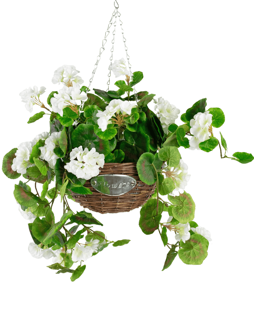 Konstgjord Begonia Vit i Korg - UV-skyddad 70 cm