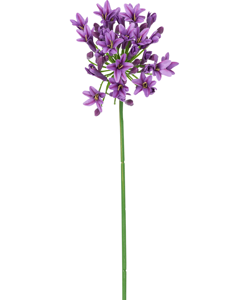 Förvandla ditt rum med den eleganta och livfulla konstgjorda blomman Agapanthus. Med sina imponerande 77 cm i höjd och en vacker lila nyans, är denna blomma den perfekta dekorationen för alla hem, kontor eller evenemang.