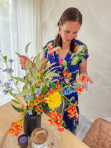 Vad gör denna bukett extra speciell? Amaryllis och Dahlia är riktiga beröringblommor, så att de inte bara känner sig vackra, utan också realistiska. En perfekt kombination av silkesblommor av hög kvalitet och livsliknande detaljer!