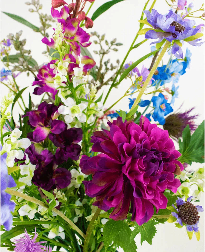 - Hållbarhet utan Kompromisser: Njut av de intensiva lila färgerna som aldrig bleknar. Vår bukett är ett perfekt alternativ till riktiga blommor, utan behov av vattning eller underhåll.