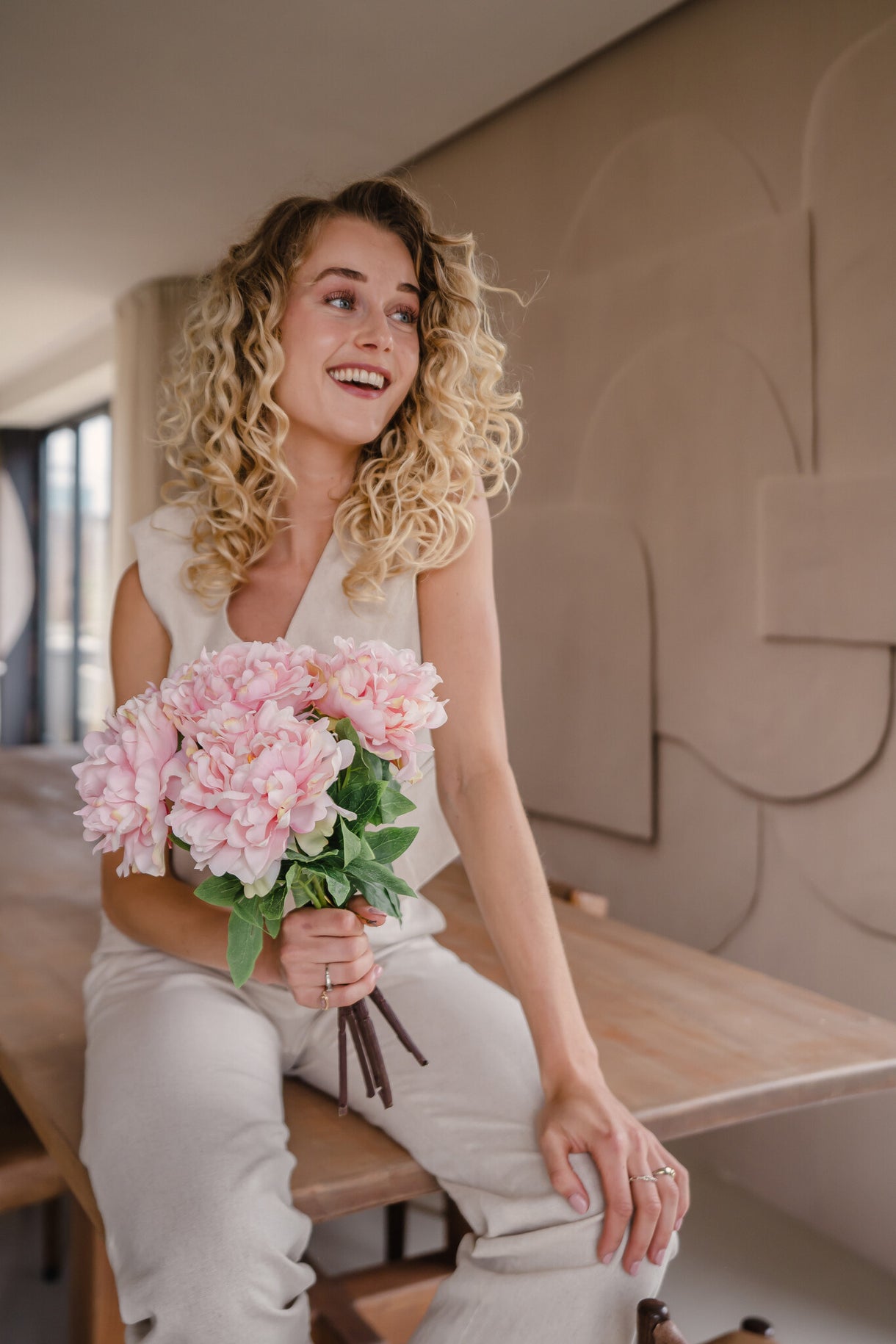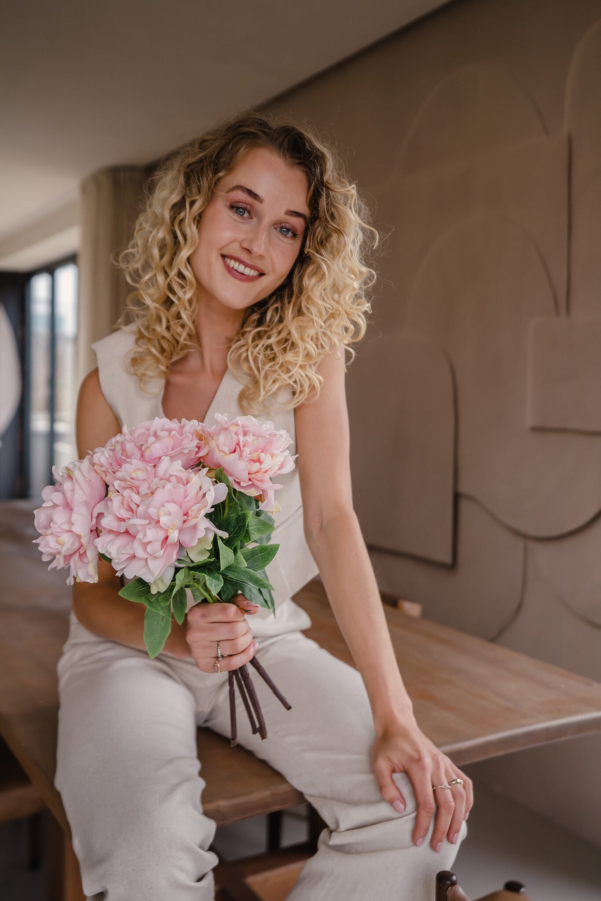 Upplev en blomstrande inredning med vår konstgjorda bukett Pion i mjukrosa, som mäter 39 cm. Denna bukett är inte bara en visuell njutning utan också en praktisk lösning för att försköna ditt hem.