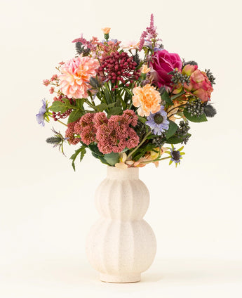 Välkommen in i en blomstrande värld med Konstgjord bukett Silk Pretty Pastel. Denna eleganta bukett är mer än bara dekoration; den är en symbol för hållbarhet och tidlös skönhet. Se hur denna bukett blir en oas av färg och liv i ditt hem utan att kräva något underhåll.