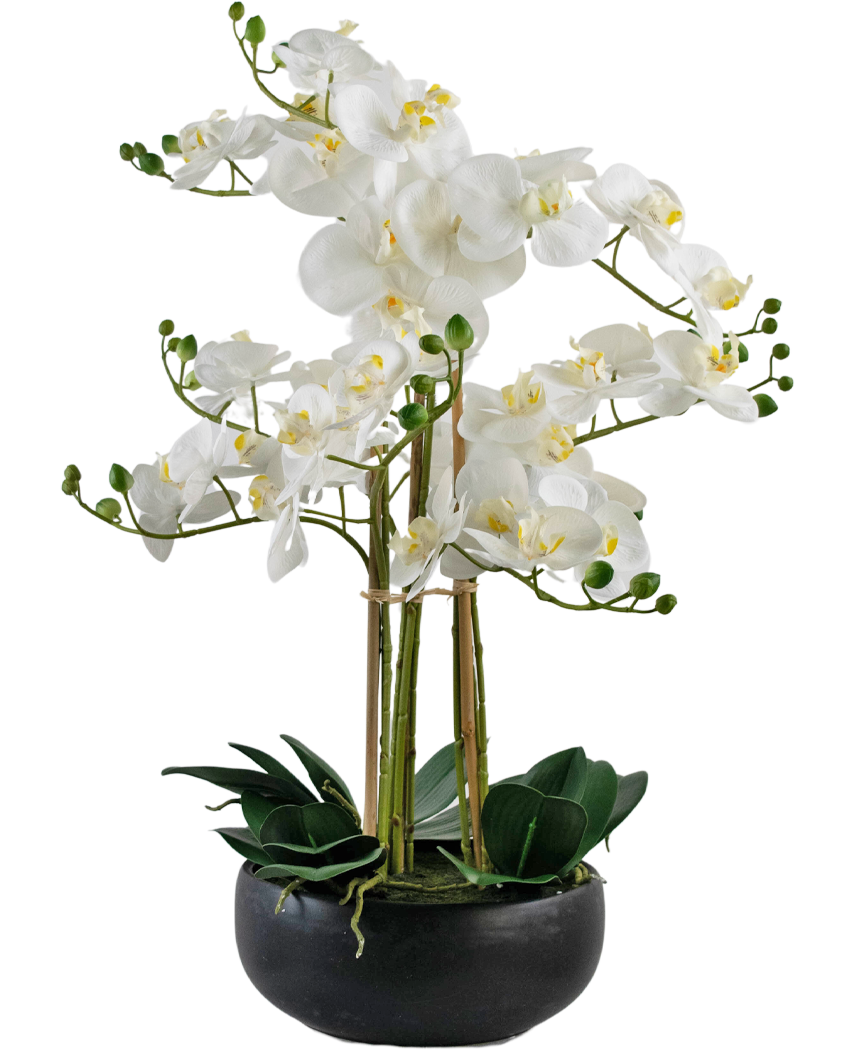 Konstgjord orkidé Real Touch 65cm vit i kruka svart