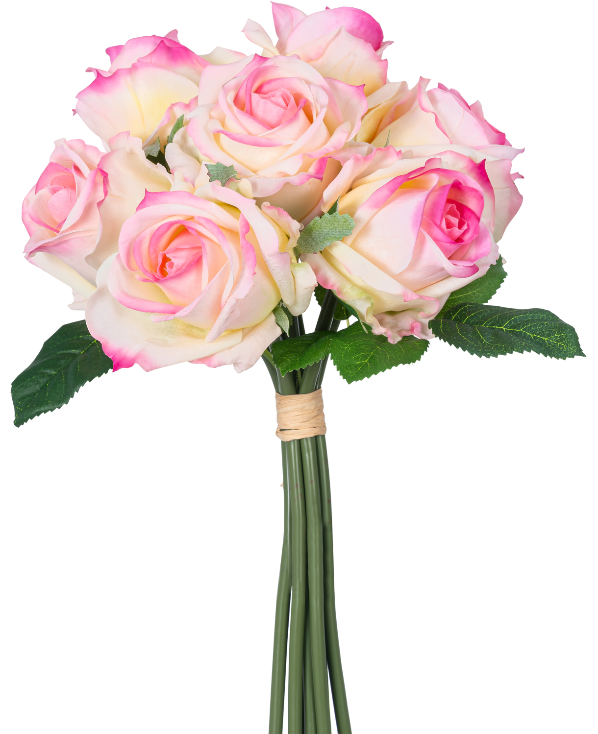 Konstgjord rosbukett 7 rosor Real Touch Cream/Pink 30 cm