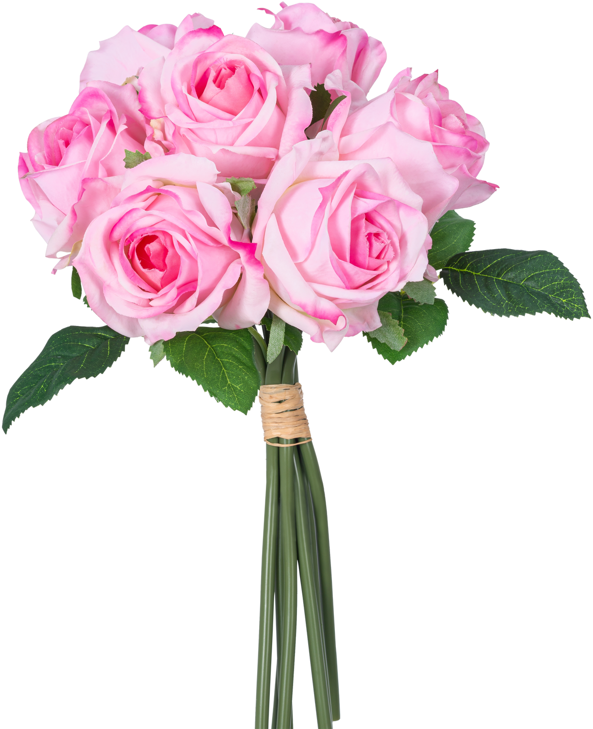Konstgjord rosbukett 7 rosor Real Touch Pink 30 cm