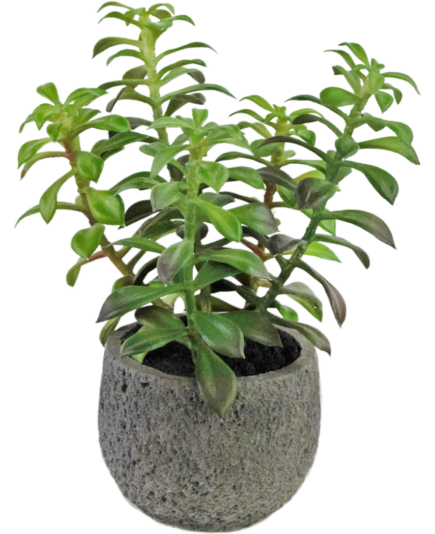 Förvandla ditt hem eller kontor med vår eleganta konstgjorda suckulent i en stilren prydnadskruka. Denna vackra växt är perfekt för den som älskar naturen men inte har tid eller möjlighet att sköta om levande växter.