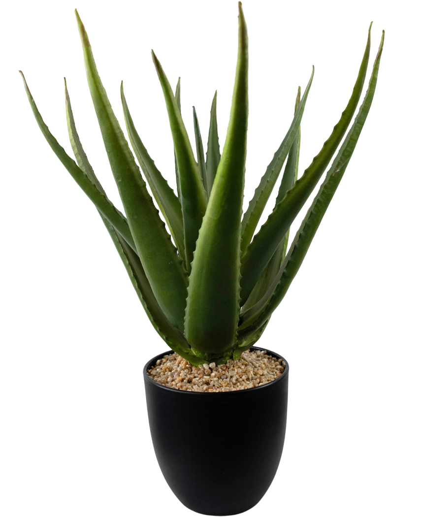 Förvandla ditt hem eller kontor med denna vackra och underhållsfria konstgjorda Aloe Vera-växt. Med sin imponerande höjd på 45 cm erbjuder den en naturlig och fräsch känsla utan det krav som kommer med levande växter.