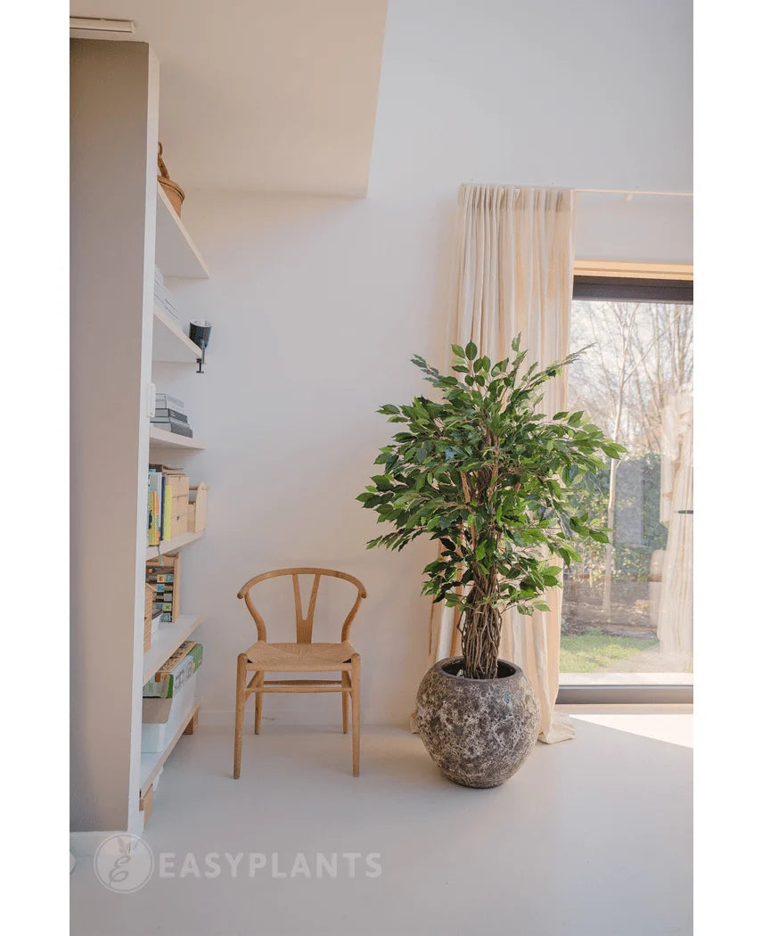 Upptäck den konstgjorda Ficus Tropical Liana, en imponerande 150 cm hög växt som ger liv och färg till alla utrymmen. Med sin realistiska design är den en perfekt lösning för både hemmet och kontoret.