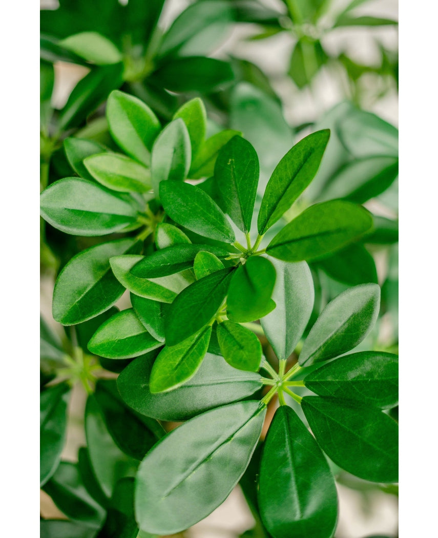 Följ med in i en värld av grönska med vår konstgjorda växt Schefflera. Denna fantastiska växt är en perfekt kombination av naturlig skönhet och praktisk användning, utan behovet av dagligt underhåll.