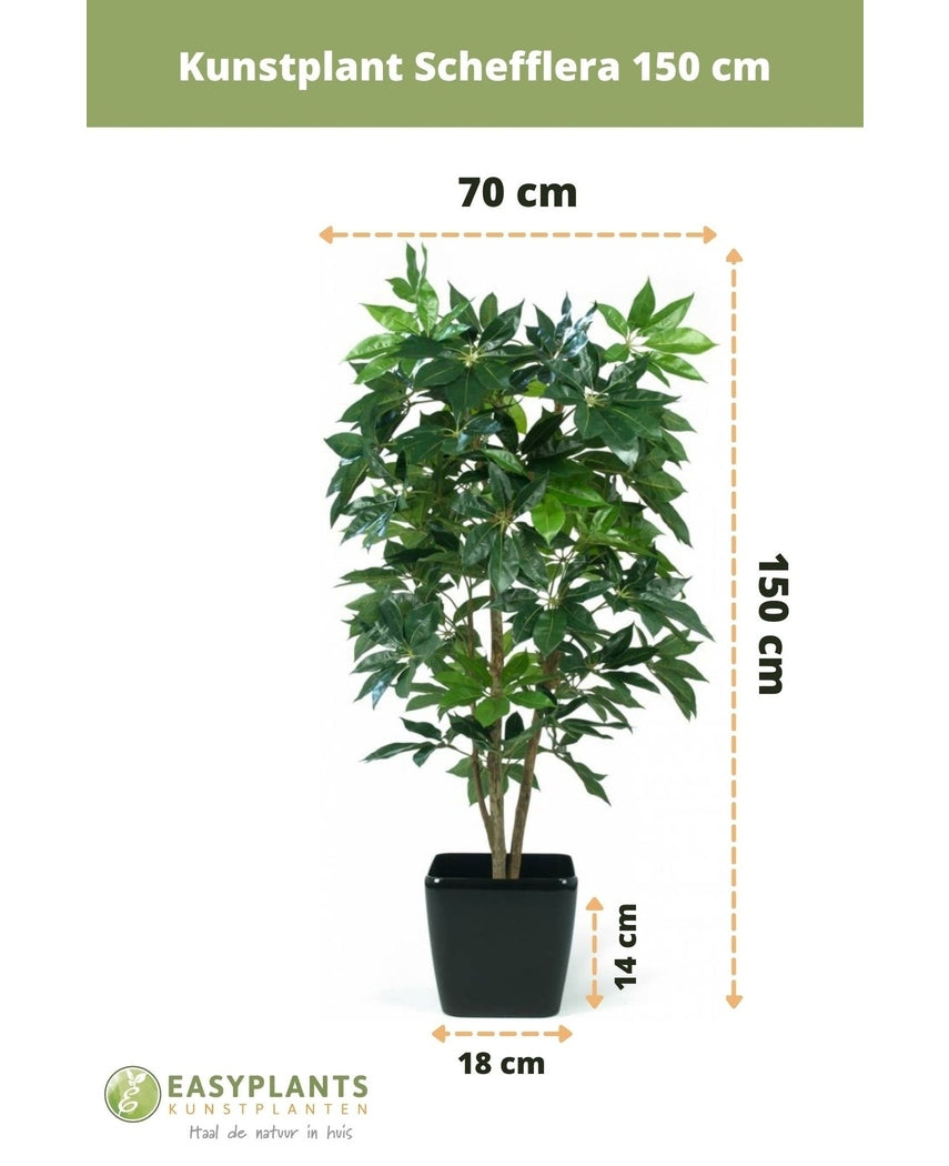 Upptäck den tidlösa skönheten hos vår konstgjorda växt Schefflera, som hyllar namnet av den tyske botanisten Jacob Christian Scheffler. Med en imponerande höjd på 1,50 meter är denna växt en perfekt lösning för den som söker grönska utan underhåll.