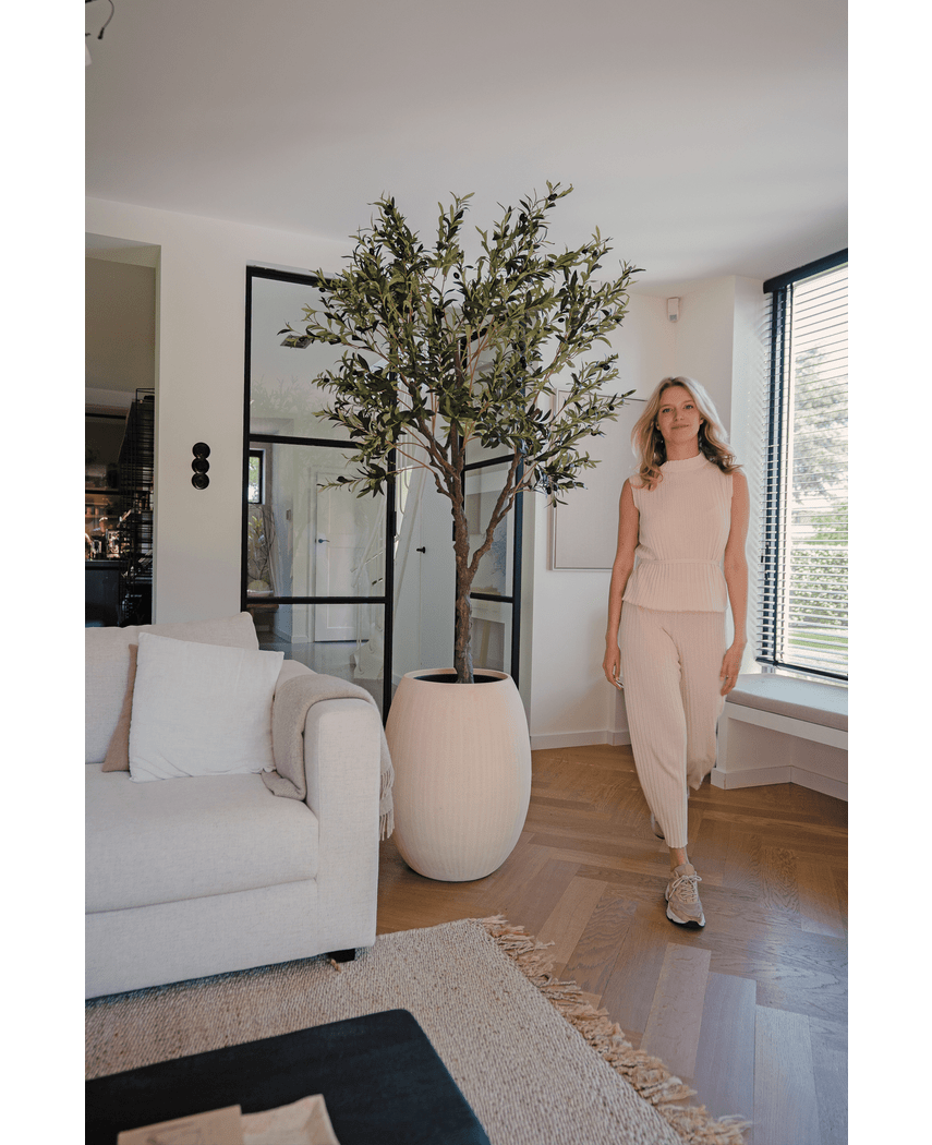 Det konstgjorda olivträdet på 200 cm är mer än bara en växt – det är en slående blickpunkt som förvandlar varje rum till en oas av stil och elegans. Med sin graciösa design och realistiska detaljer förmedlar detta olivträd en känsla av värme och medelhavscharm som är oemotståndlig.