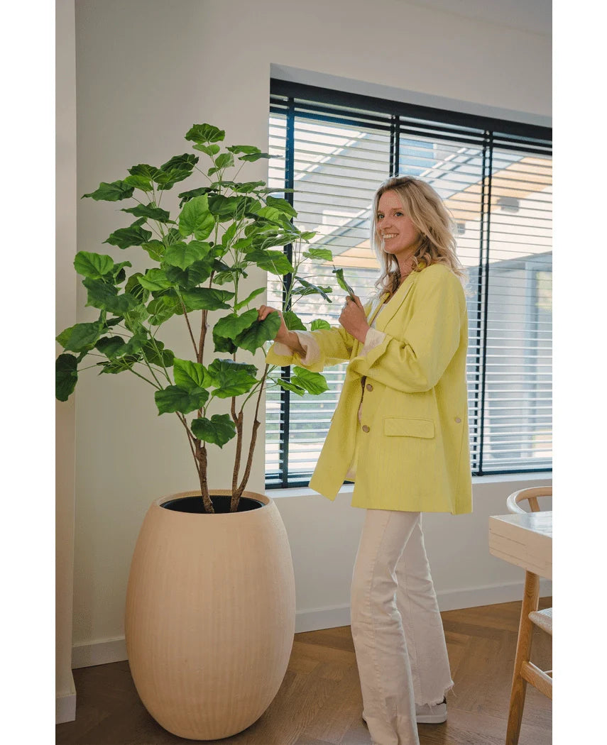 Våra konstgjorda växter går knappt att skilja från den äkta varan. Vi använder högkvalitativ plast som inte bleknar och stammarna är tillverkade av äkta trä, vilket ger dem ett mycket naturligt utseende. Om du fortfarande har några tvivel om kvaliteten, inbjuder vi dig att besöka vårt showroom!