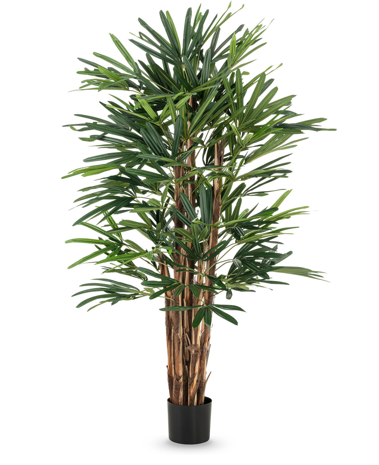 Dekorera ett kontorsutrymme, en hall, en butik eller en pool med denna konstgjorda Lady-palm på 1,50 m. En riktig hit från vår omfattande kollektion av lyxiga konstgjorda växter och träd. En palm skapar en trevlig tropisk atmosfär, men en riktig palm har sina nackdelar. Du måste vattna och fylla på krukväxtjord regelbundet, ta bort döda löv och beskära då och då. Om du väljer den här konstgjorda Lady-palmen kan du glömma dessa nackdelar mycket snabbt. Damma bara av den då och då och voilà, den konstgjorda palmen ser ut som ny igen.